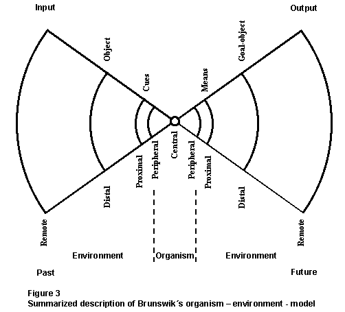 The background and the framework for all descriptions of Brunswikian human process-characteristics consist of his structural organism-environment model which was frequently utilized throughout his whole scientific work.